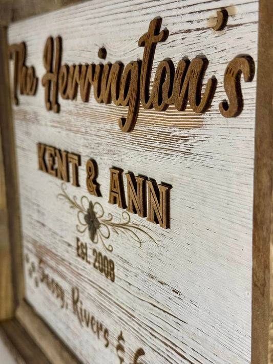 Custom Personalized Whitewash Rustic Wood Family Name Sign 11"x14"